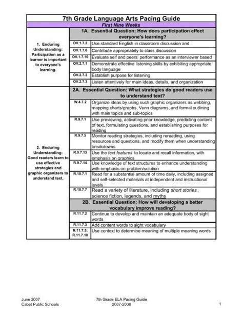 Read 7th grade language arts pacing guide PDF